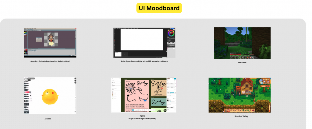 2 | 1. Research starts for UI/UX, users, and programming 2. User interviews and user surveys 3. Research different Indigenous art styles 4. Research UI layouts inspired by the software aesthetics of the 80s and 90s | 1. Determine the feasibility for implementing the art tool. 2. Determine the most feasible coding framework. 3. Determine which art format (raster, vector, or pixel) the team will focus on implementing. 4. Understand what the users need and want to do with the digital art tool. |