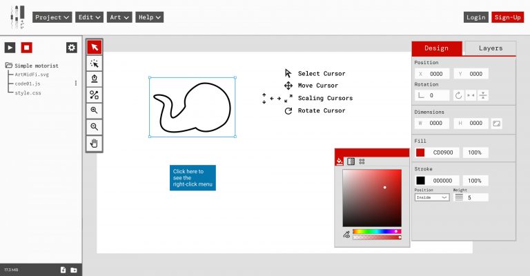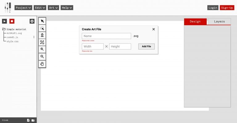 The functional prototype of the art tool allows users to do the following functionality: